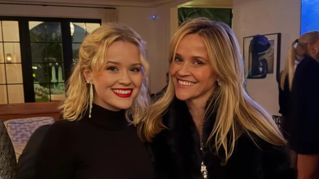 In the image, Witherspoon and Ava appear side by side at what looks like a festive gathering, dressed in coordinated black outfits. Both share similar blonde hairstyles, adding to the visual similarity that quickly caught the attention of fans.